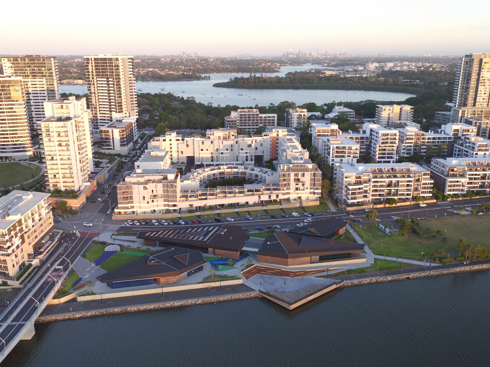 Functionality of design was a paramount consideration for this new community precinct in suburban Rhodes. The choice of structural steel as the basis for construction allowed for the optimum solution to address various site constraints; providing a method of building that was quick, simple and avoided excessive interruptions to the surrounding traffic and community.Addressing the requirement for multiple public entry points (including water frontage and two street entrances) the site consists of four interconnected buildings in a series of complicated geometries. The single storey structures fit within the landscape of existing high rise buildings, avoiding blocking any water views, and providing a transitional space between residential areas and waterfront. The complex also showcases interesting textures and types of Façade cladding, including timber screens, glazing, precast panels and planting zones.